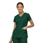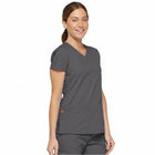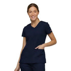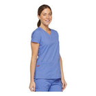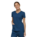 Filipina quirúrgica, clínica o médica de corte contemporáneo con cuello en V, cinta de sarga con el logotipo de Dickies en la nuca y una trabilla para instrumentos en el bolsillo derecho. También incluye varios bolsillos de parche con ranuras para lápices, costuras princesa en la espalda y aberturas laterales.